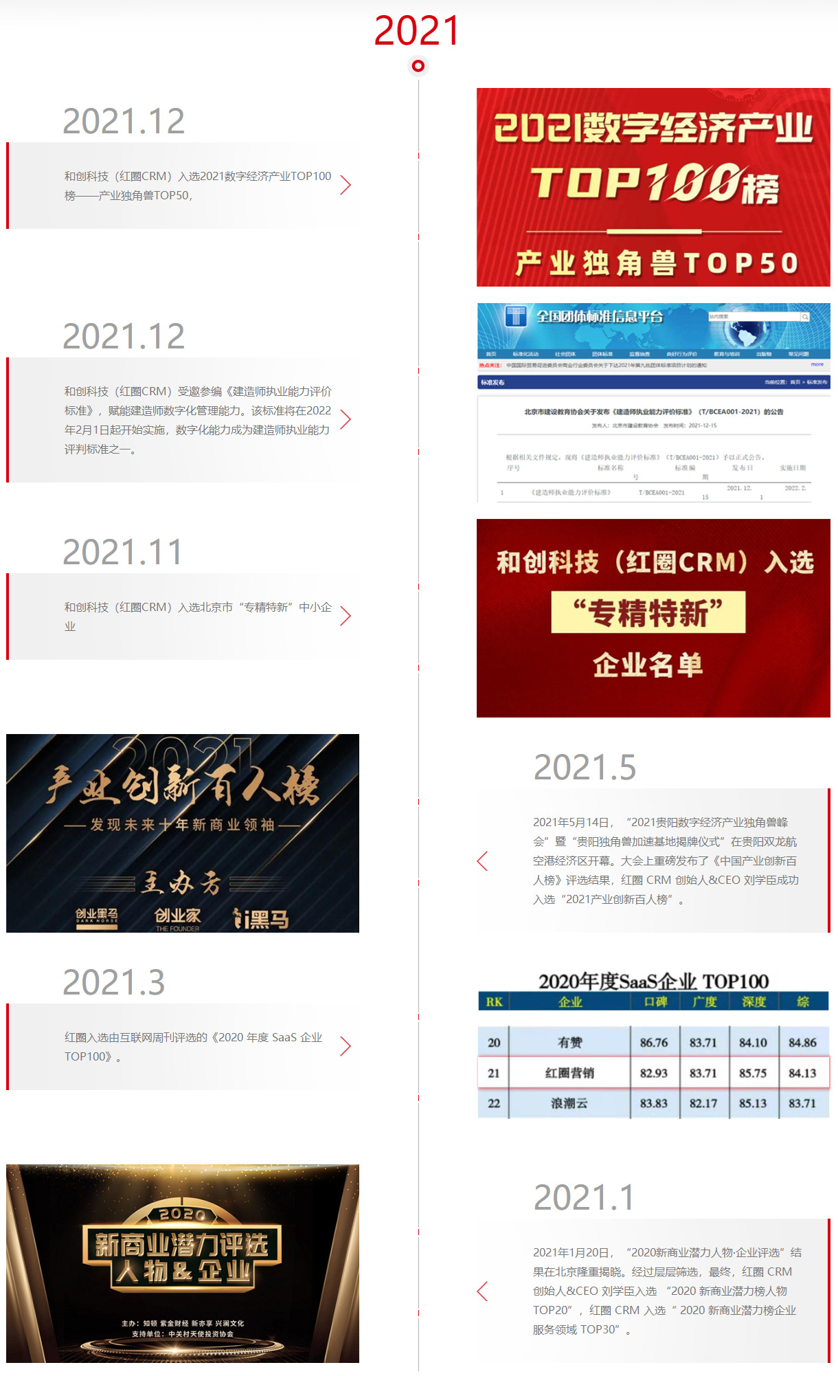 和創(chuàng)科技(紅圈CRM)入選2021數(shù)字經(jīng)濟(jì)產(chǎn)業(yè)TOP100榜