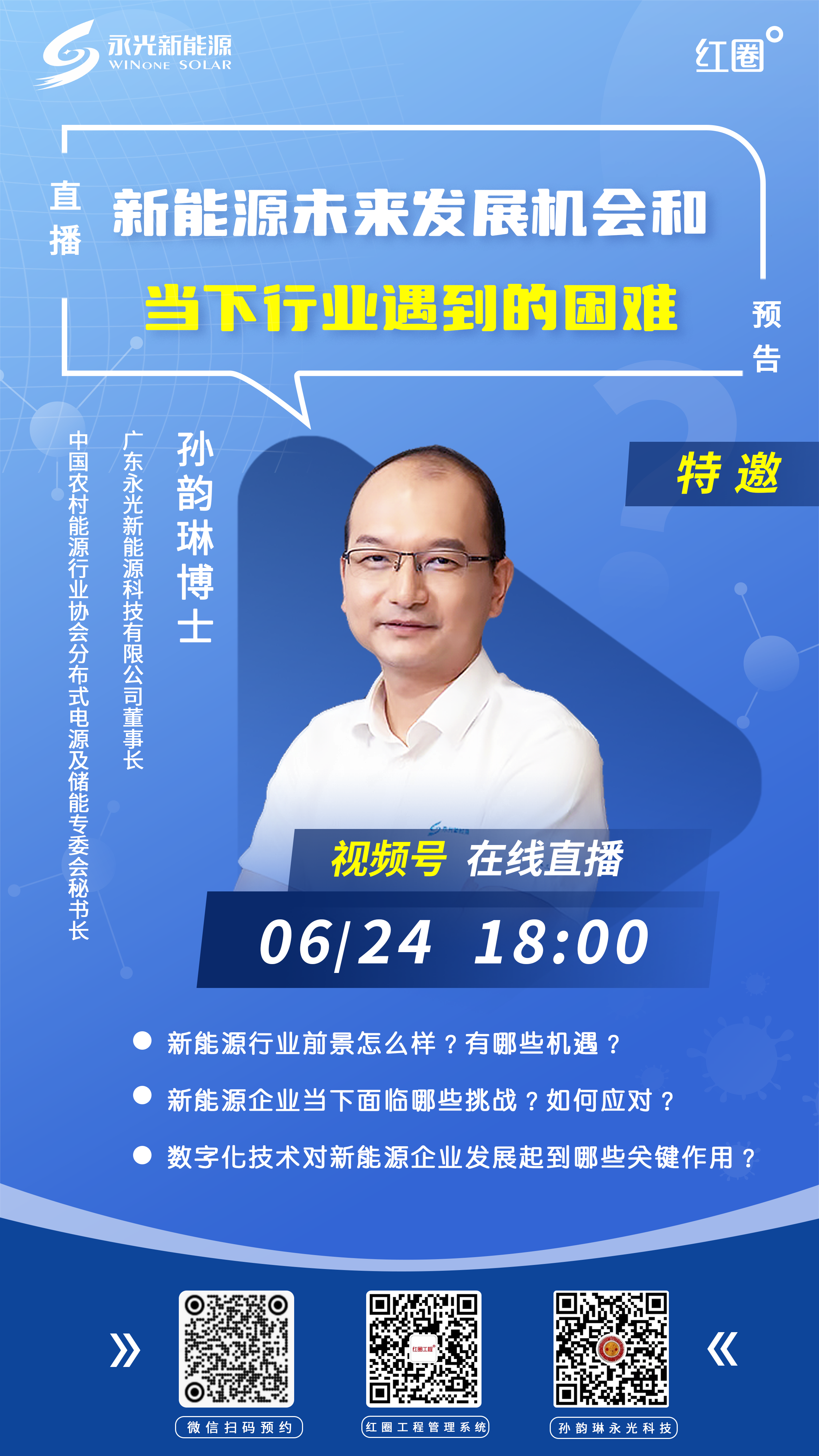 直播平臺:微信視頻號(微信搜索并關注視頻號“孫韻琳永光科技”、視頻號“紅圈工程管理系統”,同步觀看直播)
