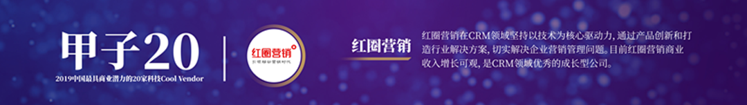 “紅圈營銷”榮獲甲子20“2019中國最具商業(yè)潛力的20家科技Cool?Vendor”