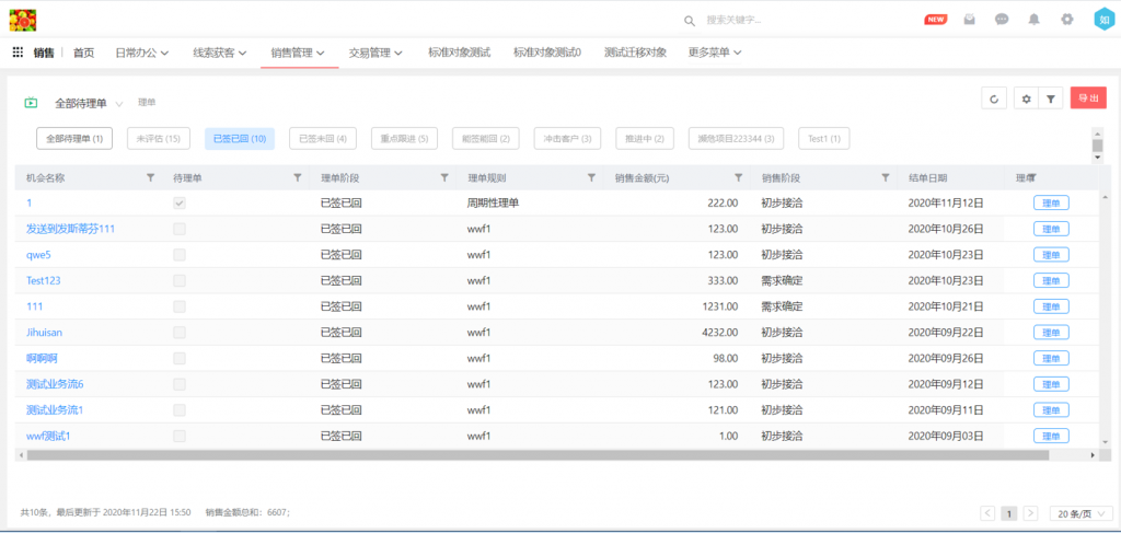 理單應(yīng)用頁面邏輯調(diào)整,按理單階段顯示全部銷售機(jī)會(huì),且將待理單數(shù)據(jù)單獨(dú)顯示