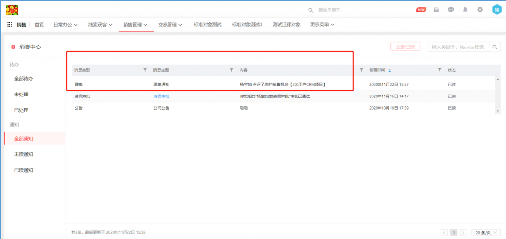 理單后,系統(tǒng)默認(rèn)給機(jī)會(huì)負(fù)責(zé)人發(fā)內(nèi)部消息通知