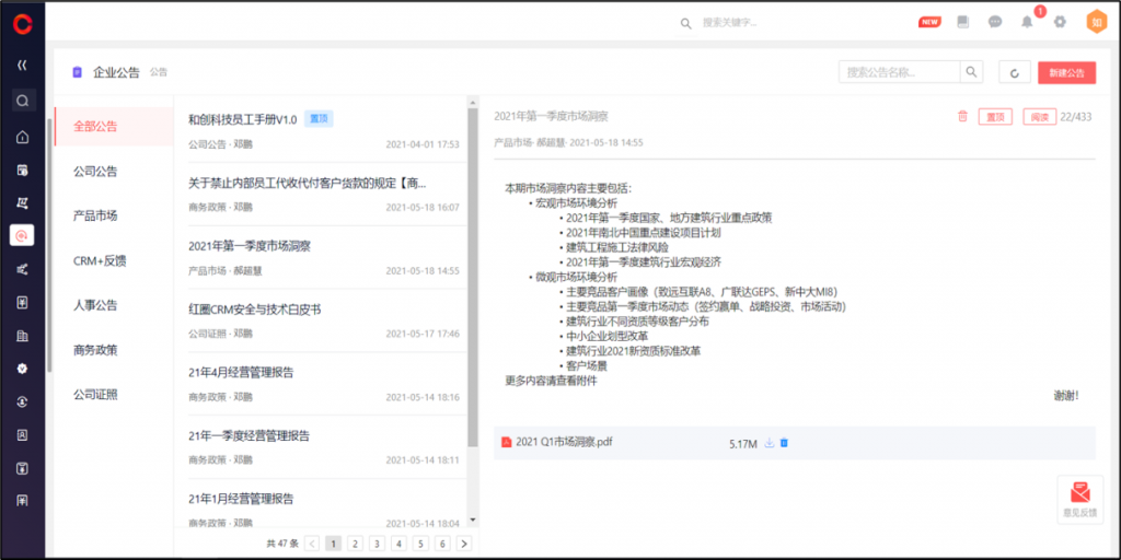 - 紅圈?CRM:以PaaS平臺為支撐,項目管理和銷售管理并舉