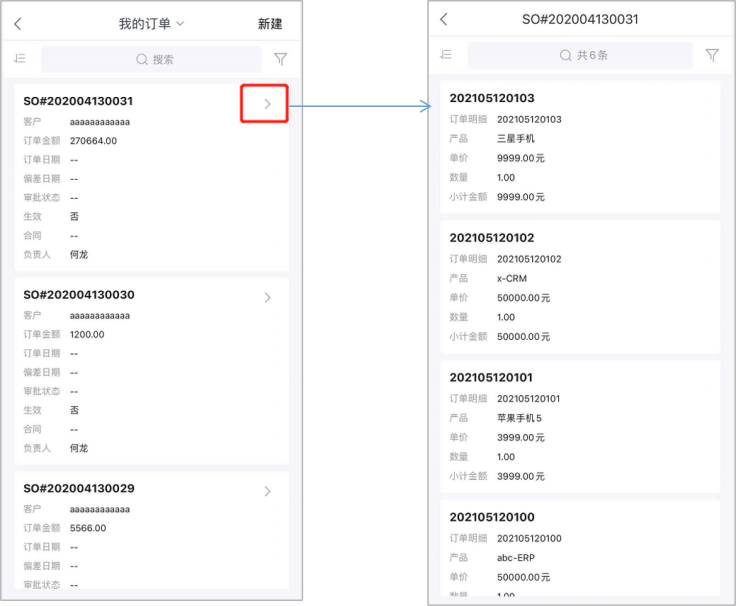 App端子對象列表顯示雙列:子對象組件中的字段會以兩列的方式進(jìn)行展示,方便快速查看明細(xì)
