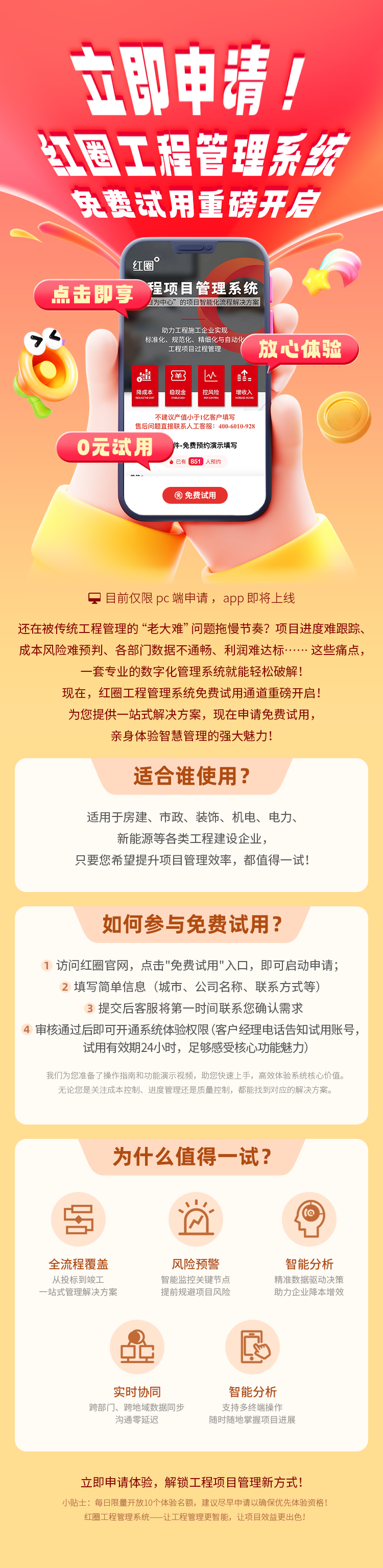 立即申請!紅圈工程管理系統免費試用重磅開啟!