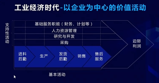 在邁克爾波特的價值鏈理論中企業整個的價值鏈的價值是由基本活動來實現的,或者生產,或者銷售,或者供應,或者服務,或者渠道。然后支持性的活動是保證價值活動效率和成本最佳,所以你會發現整個價值是一個鏈條產生的。