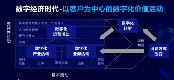 數字時代的來臨帶來的最大變化是什么?支持性活動可以產生價值,基本活動也可以產生價值,整個上下游還是可以產生價值。最后發現我們產生價值的空間變多了。原來只在一條鏈上,而且這條鏈上只有基本活動產生價值,其他只是改變成本和價值。可是數字技術來了之后,所有的環節都可以產生價值,無論是支持活動、基本活動,還是上下游的產業活動。我們告訴各位,這是源于消費方式的改變。