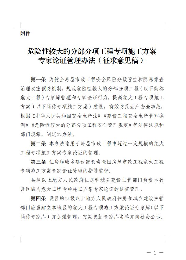 附件:危險(xiǎn)性較大的分部分項(xiàng)工程專(zhuān)項(xiàng)施工方案專(zhuān)家論證管理辦法(征求意見(jiàn)稿)