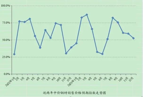 12月1日,據國家發改委價格監測中心網站消息,調查顯示12月份鋼材市場預期仍審慎樂觀。據對全國重要鋼材批發市場調查,12月份鋼材批發市場銷售價格預期指數、購進價格預期指數分別為52.4%、56.7%,比上月分別下降6.7和3.2個百分點,均保持在50%分界線之上,反映出市場對12月份鋼材價格繼續保持審慎樂觀,看漲預期略有減弱。