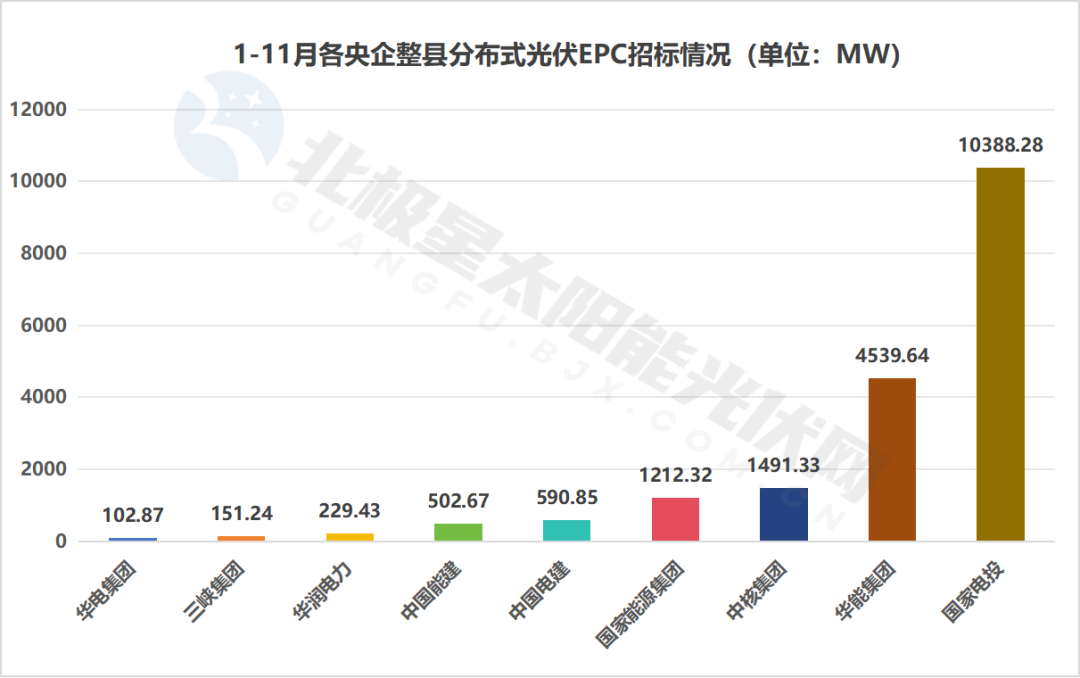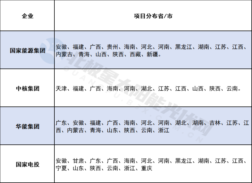 具體來看,國家電投以76個項目的總規模約10388MW位列首位,這些項目分布于安徽、福建、廣西等17個省份。