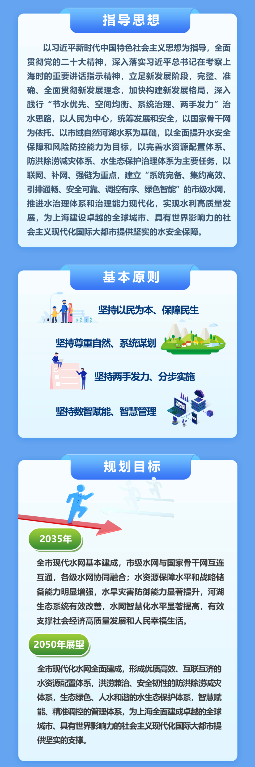 《規(guī)劃》提出,到2035年,全市水網(wǎng)基本建成,市級(jí)水網(wǎng)與國(guó)家骨干水網(wǎng)互通,各級(jí)水網(wǎng)協(xié)同融合;水資源保障水平和戰(zhàn)略儲(chǔ)備能力明顯增強(qiáng),水旱災(zāi)害防御能力顯著提升,河湖生態(tài)系統(tǒng)有效改善,水網(wǎng)智慧化水平顯著提高,水網(wǎng)管理效能極大提升,有效支撐全市社會(huì)經(jīng)濟(jì)高質(zhì)量發(fā)展和人民幸福生活。到2050年,全市現(xiàn)代化水網(wǎng)全面建成。