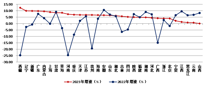 圖16 2022-2023年各地區(qū)建筑業(yè)總產(chǎn)值增速