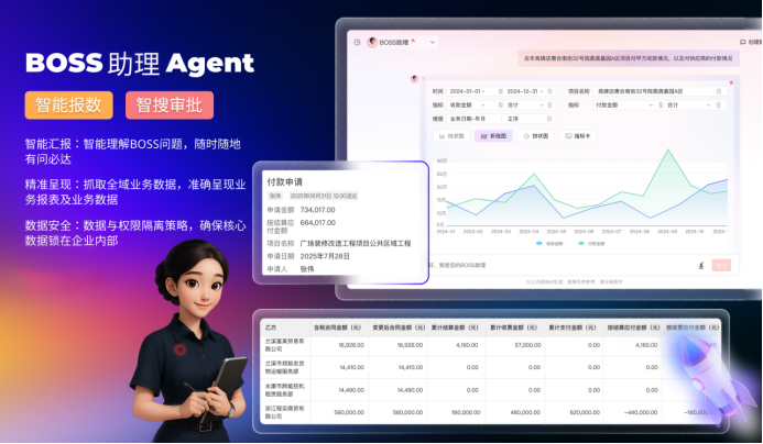 您只需像聊天一樣提出問題,例如“上月華東區(qū)的項目利潤率是多少?”或“XXX合同的付款進度到哪了?”,BOSS助理Agent即可實現(xiàn)智能報數(shù),有問必答,隨時匯報。它能夠智能理解管理者任何時間下達的指令,快速響應(yīng)并抓取全域業(yè)務(wù)數(shù)據(jù),精準呈現(xiàn)多維報表及數(shù)據(jù)卡片,告別需多人匯報的繁瑣與校驗。同時,通過紅圈系統(tǒng)權(quán)限和數(shù)據(jù)建模能力,確保核心數(shù)據(jù)不被大模型采集與留存,保障數(shù)據(jù)安全。