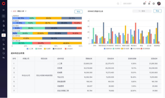 工程項目成本構成復雜,涉及人工、材料、機械等多方面,傳統的成本核算滯后且不精確,容易導致過程成本失控、項目利潤不及預期。同時,材料成本占項目總成本比重高,其采購價格波動、領用超耗等問題若不能及時掌握,會直接侵蝕項目利潤。企業亟需一種能夠對成本進行實時對比分析、對物資進行全流程監管的有效工具。