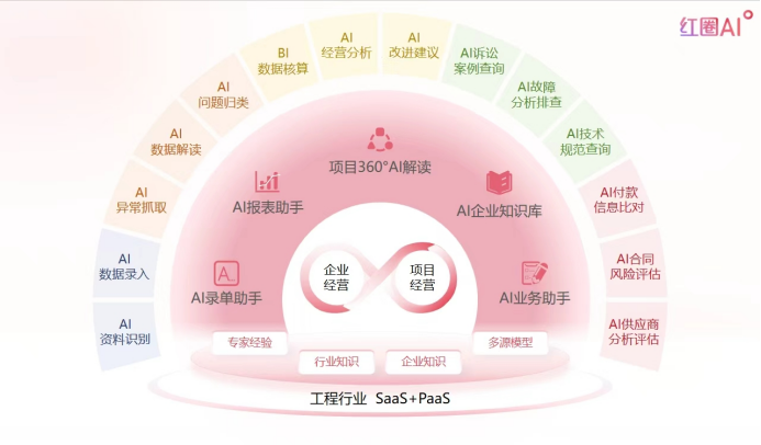 紅圈系統的價值不僅限于服務單個項目經理,它更是一個以提升企業經營結果為目的的信息化平臺。紅圈工程項目管理系統專門服務于工程企業,其功能聚焦于圍繞項目的經營管理,助力企業實現業務流程的標準化。這背后,離不開和創科技強大的PaaS平臺支撐及AI系列智能產品的深度賦能。公司基于長期且大量的客戶服務實踐,在建筑工程行業積累了深厚的知識,基于紅圈PaaS平臺+SaaS應用的架構,使得系統能夠靈活可配,滿足客戶的個性化需求,產品擴展性強,能夠陪伴企業共同成長。