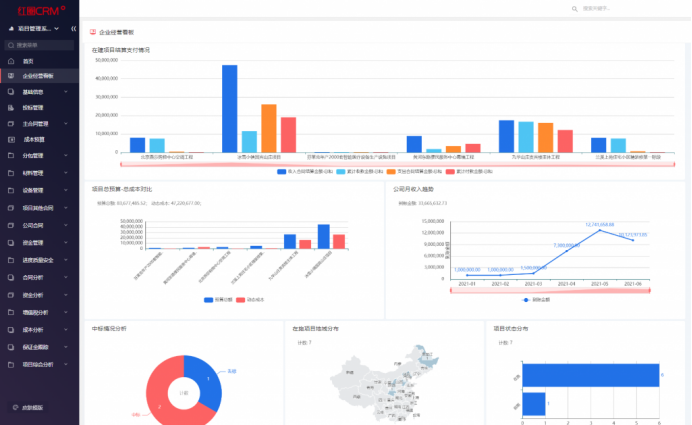 海量、分散的項目數據若不能轉化為有效的決策依據,其價值將大打折扣。國企管理者需要的是一個能夠聚合多標段、多項目數據,并提供智能分析支持的管理駕駛艙。紅圈系統不僅滿足業務流程在線化的需求,更致力于為管理者的動態決策提供實時、準確、有效的依據。