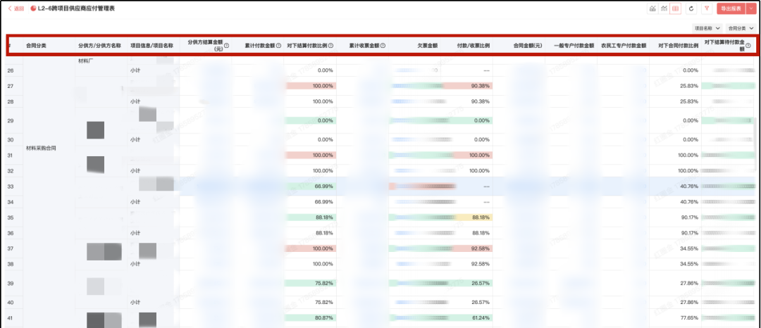 → 跨項目結算整合:自動計算供應商服務多個項目的整體付款比例,支持“總量控制+分項目排期”,對下付款有依據,更合理;