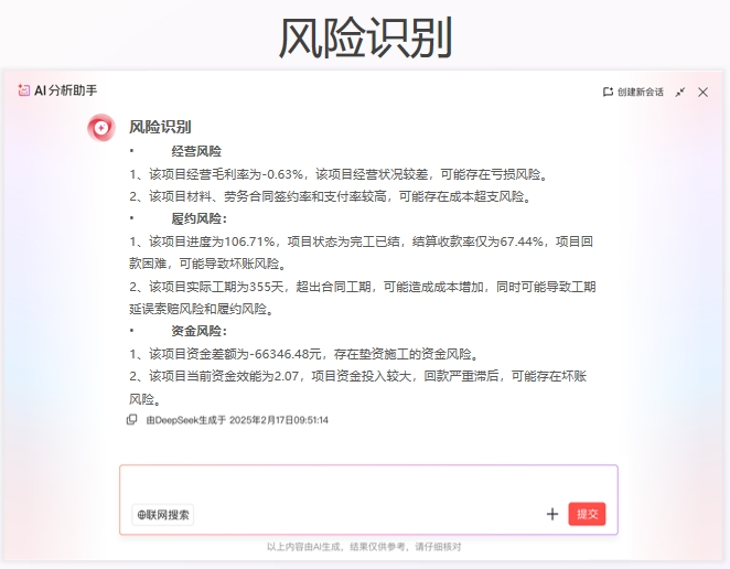 → 預算-采購-執行數據自動串聯:動態利潤偏差快速預警,老板手機實時彈窗提醒(例:“XX項目成本超預算7%,損耗指向材料采購”)