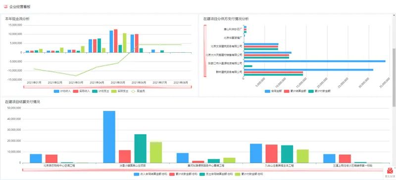 → 三級資金穿透看板:實時監控集團/子公司/單項目的資金結余、墊資情況及現金流健康度