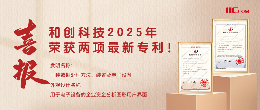在2025年的新春之際,和創科技以其卓越的創新能力和深厚的技術底蘊,迎來了科技研發的新里程碑——連續榮獲兩項最新專利認證,分別是外觀發明專利《用于電子設備的企業資金分析圖形用戶界面》以及發明專利《一種數據處理方法、裝置及電子設備》。